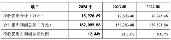 而这一“成绩”的取得,一定程度上还得益于税收优惠的支撑,不然下滑幅度更大。2022年到2024年,马可波罗通过各类税收优惠政策获得的税收优惠金额分别为1.62亿元、1.79亿元和1.89亿元,持续增加,占各期合并报表口径利润总额的比例分别为9.05%、11.3%和12.44%。